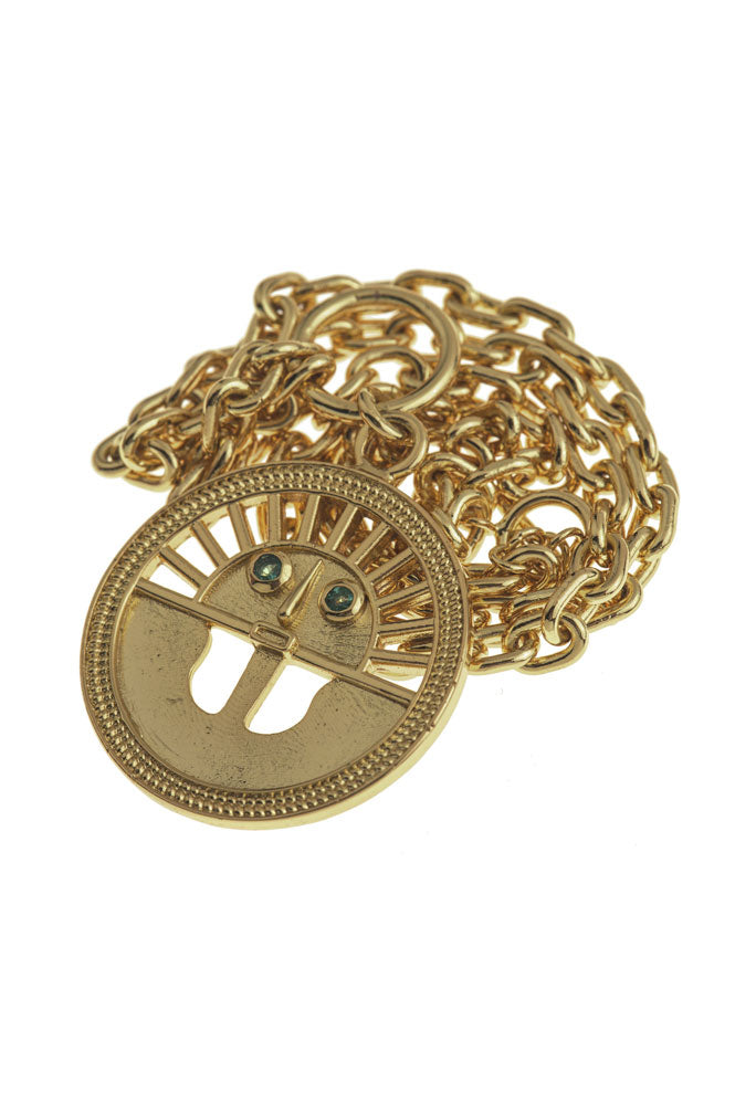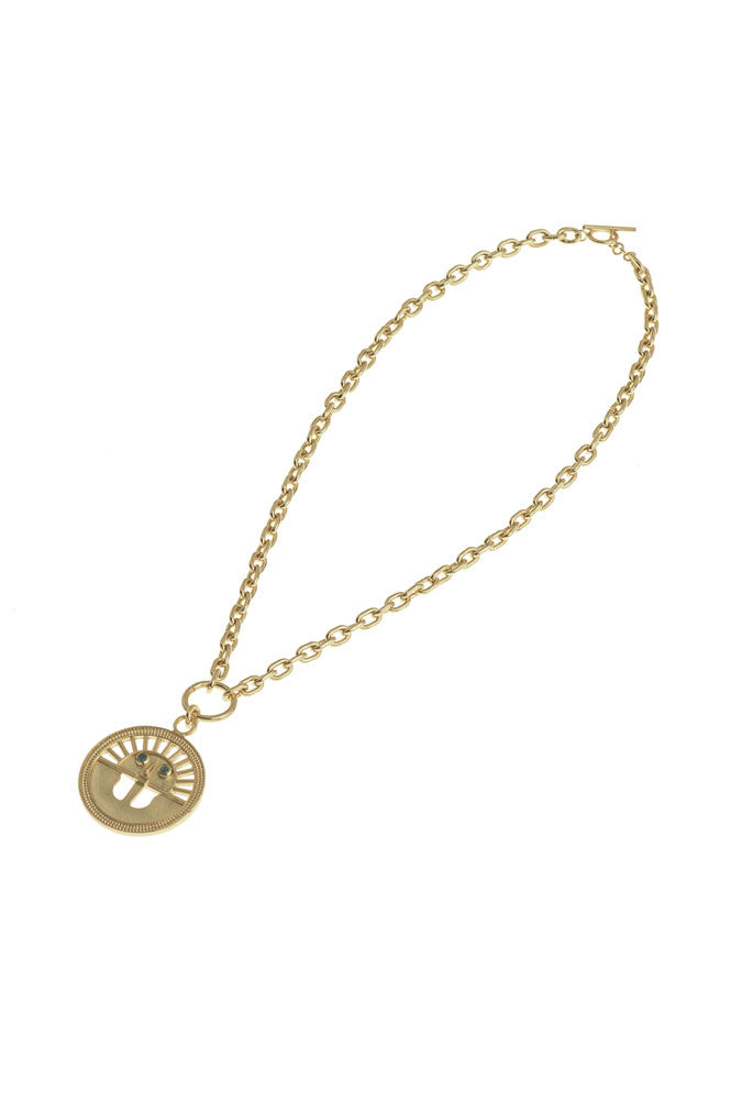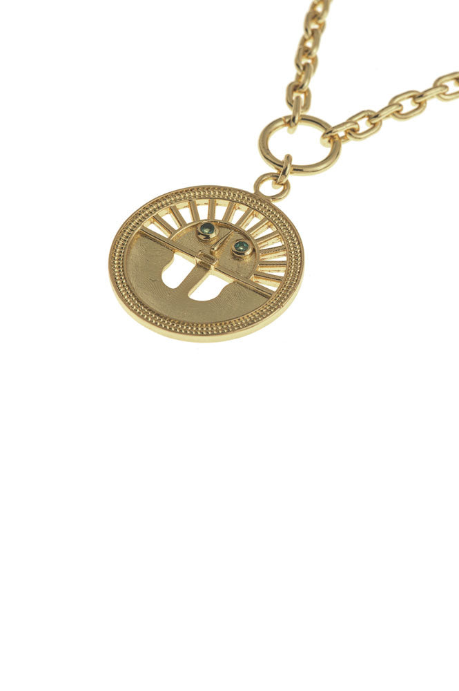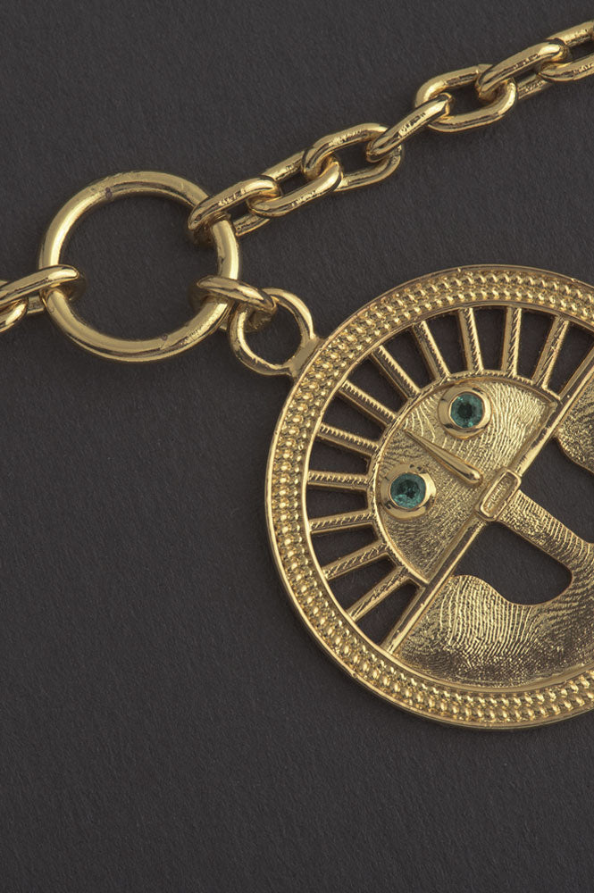 Pendant in gold plated silver with emeralds from Coscuez mines (Boyaca, Colombia). Chain in gold plated brass. 24 karats.